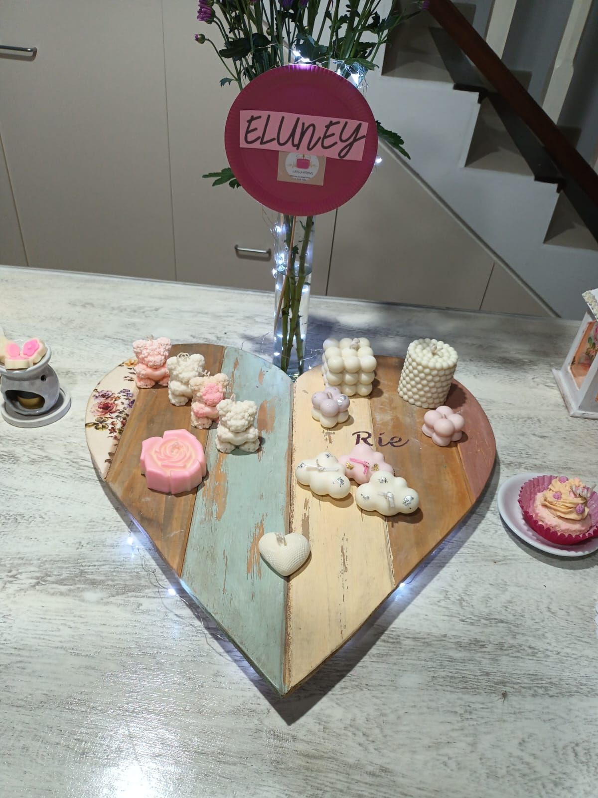 También realizó velas y souvenirs personalizados, creando piezas únicas a gusto del cliente, ideales para eventos, regalos especiales y empresas que buscan un detalle distintivo.